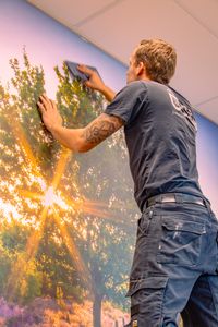 Of je nu kiest voor naadloos fotobehang, muurstickers, functionele folies of een complete interieurwrap, wij zorgen ervoor dat elke ruimte verandert in een inspirerende blikvanger.